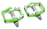 Allnice BMX MTB Mountain Bike Road Bicycle Three Bearing Shock Absorption Aluminum Pedals, 9/16" (Green+White)