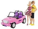 Barbie and Ken Beach Cruiser: Introducing the new Barbie and Ken Beach Cruiser. With its open-top design, this new Beach Cruiser is perfect for Barbie and Ken dolls to cruise around in for some fun in the sun! The two-seater features shiny metallic wheels, a signature-pink print interior, and holofoil lights. Rolling wheels, a steering wheel that turns and seatbelts add realism to play. Includes Barbie doll, Ken doll, and Beach Cruiser.