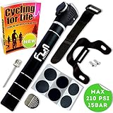 Mini Bike Pump (Rich Black) with Glueless Puncture Repair Kit ★ World's Best Micro High Pressure Portable Bicycle Air Pump 210 PSI ★ Designed For Presta & Schrader Valves