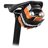 - Large is designed to carry (2) road tubes or (1) MTB tube, (2) 16g CO2, inflator, (2) tire levers, patch kit and valve extender